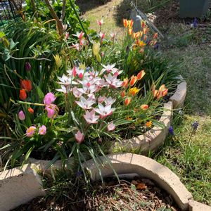 原種系チューリップ🌷サマンサ あっ!「奥様は魔女」じゃないですよぉ (子供の頃大好きだったテレビ番組)です 知ってる方は同世代ですね〜(♡ˊ艸ˋ)♬* 背丈の短い可愛いチューリップです🌷