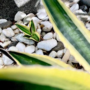 黒竹の間引きをしたら 側にアガベ 五色万代のベビーが居たよ😊 鉢植えにしましょうネ👍