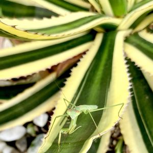 Agave lophantha 'Quadricolor' 五色万代にカマキリのオマケU^ェ^U ランナーで👶も2ッ出てました