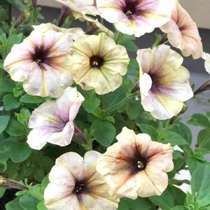 ペチュニア モンローウォークシルキーラテ 北のベランダでまさかの越冬をした苗です!! かなり咲いてくれてます(*ฅ́˘ฅ̀*)♡kawaii 八重好きの私が一重なのにここ数年お迎えしています、このお色と花の大きさがツボです (⋈◍>◡<◍)。✧♡ 今年はPWさん(幾つか)モンローウォーク、ジュリエット、花衣藍染がベランダで越冬出来ました!? 幾つかは北のベランダだったのに凄いです!! 多分最低気温-2℃にはなったと思います。 最近のペチュニア結構丈夫なのね❤(。☌ᴗ☌。)