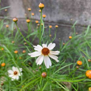 コレオプシスたくさん蕾をつけてくれ、少しずつお花が咲き始めました✨ こんなに大きくなるのですね‼️ 子供たちが一色ずつ選んだのですが …ピンク色はお星様になったようで💦 一株だけ残ってくれました😊 強風で倒れそうですが、なんとか耐えてくれますよーに🌱