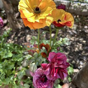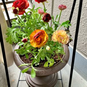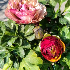 ❇️おはようございます☀️ ラナンキュラス✨トワイライトレディの2番花以降が咲いてきました。 1つの株ですが、花色全く違いますね😄