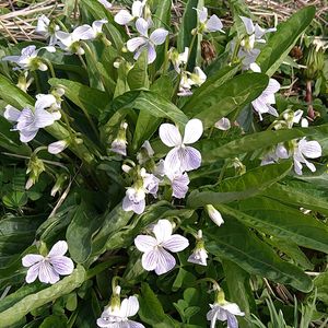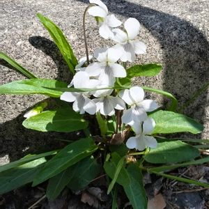 庭のスミレ達 ① タチツボスミレ? アオイスミレ? 花弁は細長く、花全体が長めで上の花びら2枚が🐇の耳のようです ② アメリカスミレサイシン3種 中央に毛がある 下2つは近所に物凄く増えていたのをいただいたもの ソバカススミレ(Viola sororia freckles)は6年前に横浜からこちらに一緒に移住して来て、庭で爆発的に増えました 他の2種も周りに怖いほど無数の芽が出ています 八ヶ岳周辺では、在来のスミレが外来種と交雑したり数を減らしているそうです庭の外来種が外に出ないよう適度に間引きながら楽しみたい… ③ 純白のスミレと2色咲きのアツバスミレ? 白スミレは ビオラ マンジュリカ '初雪' (Viola mandshurica ‘Hatsuyuki’ )かな? 白スミレは横浜にいた時に購入 今や庭中、又あらゆる鉢のオジャマ虫さん (だけど好き🤍) スジ模様無し