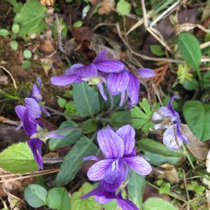 おはようございます🌿 今日は気温が 高くなりそうです💦 ①〜④ スミレ 数年前 友人から頂いた 濃い紫のスミレ 名前がわかれば教えて 頂きたいです。 (白のスミレは アリアケスミレです) ⑤ アジュガが狭い庭の 一画を占拠しています💜 満開です🎶 今日も穏やかに〜☀️