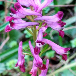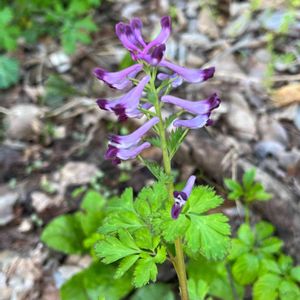 ムラサキケマン(紫華鬘) ケシ科の多年草で木陰に生えています😊 赤紫色の独特な筒状の花を多数咲かせます😃 似た仲間にエンゴサクがあります😉