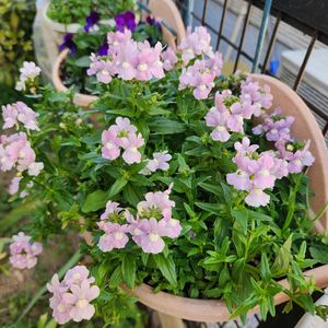 コメリの「香るネメシア」 3年目?🌸🌸 あちこちの鉢からもこぼれ種で芽が出ています。