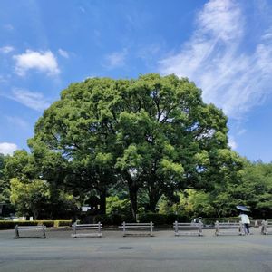 8月27日 今日のお花 🌳🌳 クスノキ 🌳🌳 🌳🌳🌳🌳🌳🌳🌳🌳🌳 クスノキは、日本に分布する高さ30メートルにもなる常緑高木で、芳香があり、防虫効果の高い「樟脳(しょうのう)」の原料となります。材は仏像や木魚などに、葉は芳香で知られ、幼い頃に樟脳の匂いを嗅いだことがある人もいるかもしれません。日本には、天然記念物に指定されている巨木も多く、古くから鎮守の森の主として神社に植えられるなど、私たちに身近な存在です。 1️⃣樹齢2100年以上の熱海来栖神社の大楠 御神木です。 2017.11/4 家族旅行で撮影 2️⃣神社のクスノキです。 3️⃣公園のクスノキです。 4️⃣5️⃣大きな公園のネムノキの花です。地下には災害時に備えて貯水槽が備えてあります。 🏷️木曜日じゃなくても木