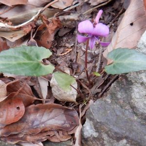 マキノスミレ スミレ科 スミレ属 美しいピンク色のお花と細長く尖った葉が魅力的です🩷 健気に咲いていました🩷