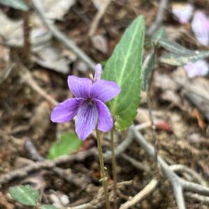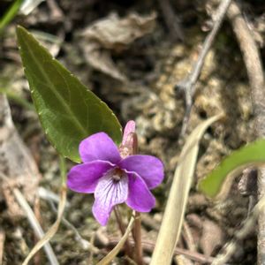 昨日の登山道で、 一株だけ見つけた子 距が長ーいので、え、テング?✨ と思ったけど、太平洋側のこんな南で出るわけない。 シハイスミレ? にしては葉っぱの立ち方とか、先月地元で見た群生とはまるで違う。 マキノスミレで宜しいでしょうか? 初見なので自信ない😓