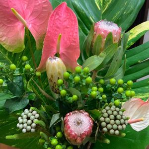 おうちのお花💐😊 またまた、ピンク中毒 グリーンにピンクが可愛く映えます😍🌸 大きな葉っぱが モンステラだと思いこんでいたら なんと!ポトス!まだまだ知らないお花がたくさんあって楽しい〜です😃🌱
