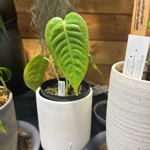 アンスリウム フォルゲッティ💕 この子は届いた箱から出したらすでに褐斑病にかかっておりまして😭15cmから20cmくらいの葉が6枚すべて全滅…早急にすべての葉を切り落とし、植えられてた土もすべて処分!そのあと徹底洗浄と不要な根を整理して…なんやかんやでやっと綺麗な新しい葉🌱が出てきました💕まぁネット購入だとこういうコンディションで届く子も珍しくもないんですけどね😊✨ちなみに左の子は小さいアンスリウム ベイチー💕