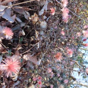 狭山丘陵花散歩 赤いコウヤボウキの綿毛畑 縁起良しかな