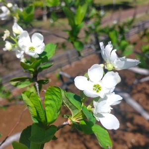 今日のお花 清楚なお花綺麗な葉とともに1⃣ 結構大きな木で枝ぶりもいい感じ2⃣ 早く晴れにならないかな〜♪