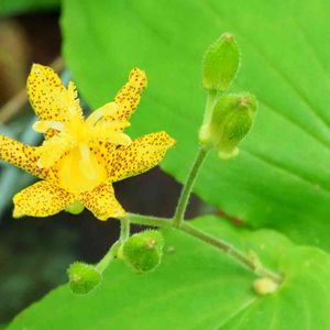 ハゴロモホトトギス 黄色のホトトギスを初めて観ました👀✨。タマガワホトトギスの変種で、茎や葉裏に毛があるものだそうです。ホトトギスの花は、ユニークな姿です。(日光植物園)
