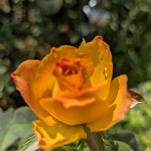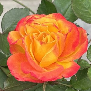 咲きました♪綺麗✨ 蕾から咲き進むにつれ、黄色💛→オレンジ🧡→赤❤️と色が変化していくバラ🌹 パキッと明るい雰囲気のバラです✨