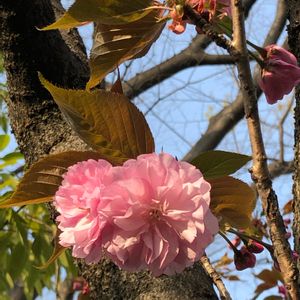 今年最後の花見🌸 もう会えないと思っていたよ。 ぽんぽん咲きのこの桜🌸 何かを始めるにしても遅すぎることはないという。 遅咲きの八重桜🌸カンザンかなぁ🤗
