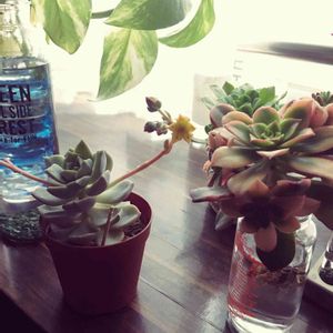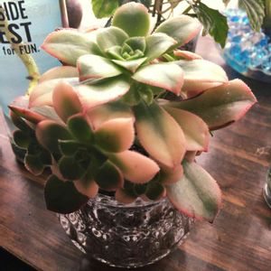 トイレの窓際に置けるような小さな多肉植物無いかなぁと探しに行った園芸店で見つけたアエオニウム キウィ ピンクが綺麗で気づいたら籠の中にインされてたとかなんとか… スパイス用の瓶に入れたら、花みたいで綺麗!