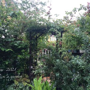 もう一枚は、いい感じになってきた中央のレヴドールさんのアーチ(ლ˘╰︎╯︎˘).。.:*🌹 垂れ下がって咲く感じに、上手く誘引出来たかも💕と、こちらも自画自賛(笑) 緑多めのお庭で、バラさんで色とりどり〜にはならない我が庭(笑) まぁ、でも馴染んでていいよね…と、花つきの悪さから現実逃避🤣 今年も日陰だから〜と、言い訳しましょうヾ( 〃ω〃)ノ🌹