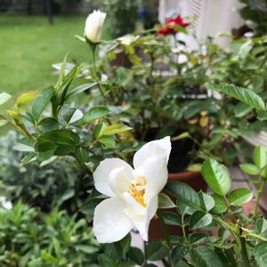 白のミニバラ 旅行中にあやうく枯れかけたけど、何とか復活 でもちょっと咲き方が変です💦 上の子が漢検2級に挑戦するため、リビングでブツブツと声に出して勉強しています 応援はしていますが、本音を言うとちょっとうるさいので自分の部屋でして欲しいなぁ( •᷄⌓•᷅ )੨੨