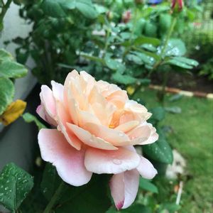 おはようございます 三連休の初日は雨☂️ アルブレヒトデューラー ローズも雨粒を纏っています