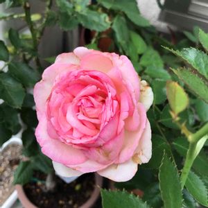 おはようございます、の時間を過ぎてしまったのでこんにちは😃 朝起きた時は晴れていたのにあっという間に曇り空に☁️ ピエールドゥロンサールが開花したけれど花びらがボロボロ ずっと軒下なのになぁ(;・∀・)