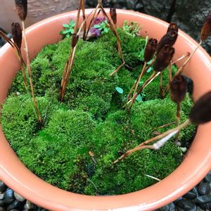 おはようございます チリアヤメの花が終わって放って置いた鉢 いつのまにか苔庭になっていました