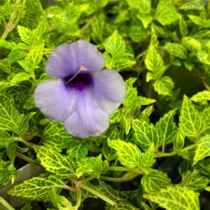 斑入りトレニア コンカラー ブルーインパルス 斑入りの葉は強い日差しに弱いので 普通のトレニアより少し遅れての入荷 黄緑のはに白の斑がくっきりで ちょっと涼しげ✩.*˚ 暑さ寒さも彼岸まで・・・といきますか? お彼岸用の仏花も昨日までに揃っているはず💦 秋植えの球根達もヒヤシンス、品種チューリップ、ゆり等ほぼ揃って来てます🍀*゜
