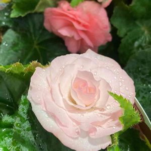 球根ベゴニア 雨粒をまとってキラキラ✨