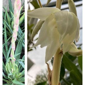 ユッカ 糸ラン ⬅️5月22日 ツボミ付きで入荷 ➡️6月9日 花咲いてました😊 まだ3つ位しか開いてないですが 全部が開くと豪華になるはず(* 'ᵕ' )☆ 先日のサボテンの花はお休みの間に咲いてしまっていたようで見られませんでした😭
