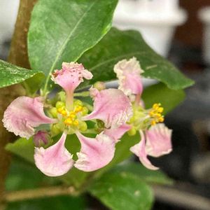 何だか分かります? レモンよりビタミンの多いアレです‼️ こんな可愛い♡花が咲くとは 正解は ⬇️ アセロラの花でした(✿・ω・)