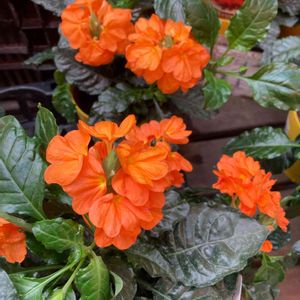 クロサンドラ 毎年この時期になると やってくるクロサンドラ✩.*˚ 昨日は職場の最寄り駅に着いて 電車🚃を降りた途端 ピリピリする様な熱気でした🥵 クロサンドラさんは 遮光ネットの下に鎮座してますꉂ🤣w𐤔