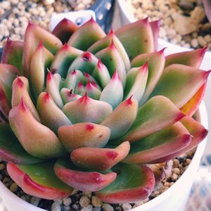 エケベリア ピーチブロッサム 小さな株2つを1つのポットに植えていたのだけれど、キツくなってきたね 春には植え替えましょう