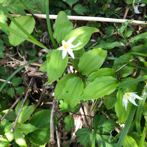 御所湖広域公園 尾入野湿性植物園までの山道 ①②チゴユリ 後ろ姿だけで失礼します。 ③④マイヅルソウ ⑤ウワミズザクラ