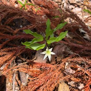 杉の枯れ葉の中に一輪だけ 下ばかり見ているお花‥