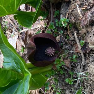 ザゼンソウ。 お坊さんが座禅をしてる姿に、花が似てる事からザゼンソウなんだって。😁🤭