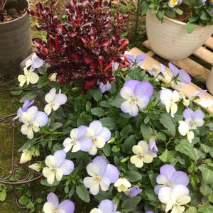 一緒に植えたコプロスマの株元がビオラで見えなくなりました😲