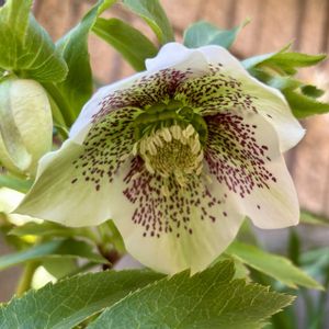 クリスマスローズ 種からの子です♬ クリーム色にエンジのスポット花 シングルですが存在感があります😊