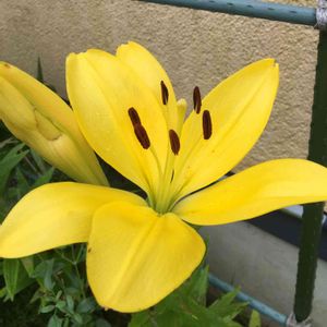 黄色のカサブランカ咲きました❣️ 雨が降り出す前に写真に納めておきました🤗 梅雨空に黄色大輪の花が鮮やかです💖