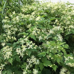 こんばんは😃 暦の📆上では立秋過ぎてますが、 今日は暑い一日でしたね 夜になっても涼しくならないです💦 今年もボタンヅルが昨年に増して沢山の花を咲かせています。 ドウダンツツジをすっぽりと覆うように花を付けています。
