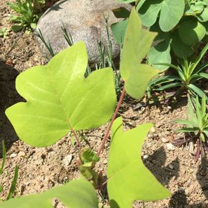庭に植えた覚えがない黄緑色の幼児の手のような葉っぱの木が生えてきました。 どなたかご存知でしたら教えてください。