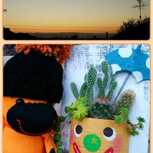 毎日、目が合います( ´艸`)💕 フフッ💞と元気がでます✨ 傘をさして頑張ってます! 今は日傘かな…☀ バニーカクタスが地味に増えてます🌵 白いモフモフが可愛いな❤ 「doriさんの顔缶タブロー」タグで寄せた時の様子見れま~す💞