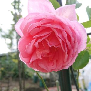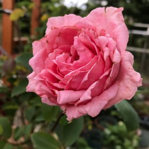 デルパールのビアンヴニュ🌹 フリルと切れ込みの入る花弁が印象的なピンクの大輪 ロゼット咲き ショートクライマー 強香 毎朝この辺りは薔薇の甘い香りが漂っているエリアです💕 ピンクの薔薇が5種類近くに植えてあります💓💖💗 ①ビアンヴニュ ②ピンクグルーテンドルスト ③オノリーヌドゥブラバン ④ラ・マリエ ➄マチルダ ピンクエリアです💓💖💗💕❣️どの子も皆可愛らしいです🌹