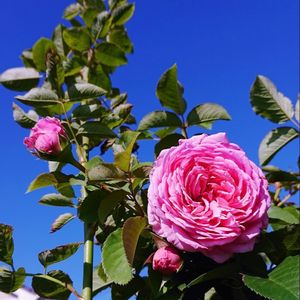 昨晩は待てど暮らせどお月様見えなかったのに💦 今朝は抜けるほどの青空☀️ 久々のビアンヴニュ🌹 いよいよアーチの上の方まで届いて咲いてます~💓 独特な花びらの切り込みは見当たらないけれど😂届かないからカット✂️ なんていい香り~(´∇`)💕