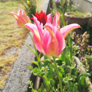 2年目のチューリップ アンジェリケ🌷 咲いてから数日経って、ピンク色が出てきた♪( 'ω' و(و " 春は1日1枚投稿じゃ追いつかない〜💦