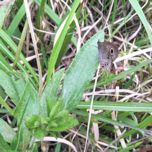 ヒメウラナミジャノメ タテハチョウ科ウラナミジャノメ属 ブラックベリーの葉の上で休んでいます。