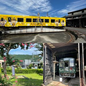 おはようございます😊 神社の後近くの天浜線の天竜二俣駅に行ってきました、1940年開業の昭和感満載の駅で、全国的にも珍しい転車台があるので、最近はアニメの聖地としても鉄道ファンやアニメファンに人気の駅です。 天浜線は1時間に一本走る一両のディーゼル車で、いろんなラッピング列車が走るのでたまに出会えると嬉しいです😍 昨日は近くの養蜂場のブンブン列車の転車を見せてくれるツアーに参加して、レトロな駅の建物にも入る事が出来ました。 夏休みとあって、なかなかの混雑ぶりで びっくりしましたが、とても楽しいひとときでした♪ 百日紅の咲く景色と花のラッピング電車って事で投稿でーす😁