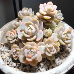 1晩考えて やっぱり買うことにした( •̀ω•́ )✧ ずーっと 紫色の多肉さんが欲しかったのです❁⃘*.゚ 寄せられて 陶器の器に入ってて・・・ 欲しいのは この子だけなんだけどなー。 この子だけが これから涼しくなったらでてくるかも・・・ そしたら ちょっとはお得に買えるよね。 と自分に言い聞かせ 帰る。 でも、寝ても醒めても、あの子のことが忘れられない╭( ๐_๐)╮ おひとり様に出会うのを待ってたら 消費税10%になっちゃうよ! とか もしかしたら もう会えないかもよ! とか 色々 理由をつけて お店に駆けつける(笑) でも、この紫ちゃん。名前は分からない (ノ≧ڡ≦)☆ デビーかなー?とか勝手に想像。 どなたかお分かりでしたら教えてください ° ✧ (*´ `*) ✧ ° 初めてリメ鉢やってみました。 リエールさんのページ見ていたら、 多肉ちゃん達 ピンクもとっても似合うのね♡♡ とピンクチョイス✩.*˚ ミムラさんとほーちゃんさんに デビー=パープルクイーン さんだよと教えていただきました(*≧艸≦)♡♡