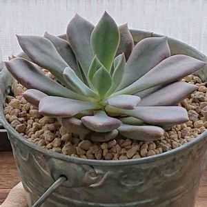 左はうちに来た当時のお姿。 右は現在のお姿。 すっかり薄くなってしまった葉っぱ。。 お水足りない?と思って一昨日くらいにお水をあげたら、外側の葉から黄色くプルプルしてきたので慌てて乾かして植替えました(°_°) 育成ライト12時間ローテでセットしてありますが、中心部の葉っぱも緑っぽいような?? 多肉さんを元気でムチムチの可愛い子にするにはどうしたらいいんでしょう(;o;) 全て自己流なのでわかりません! ●鉢底網と鉢底石使用→その上にココファイバーを少し→ひゅうが土→花こころの多肉土→オルトラン→上の方は多肉土と、ひゅうが土と、鹿沼土少し。苗のサイズにより園芸用培養土を少し入れます。 ●あとは肥料としてスーパーロングを数粒 ●水やりは1週間に1回以下で、植え付けて数日経過したあとと、木製マドラーを刺してみて乾いていたら水やり。 ●梅雨前にダニ太郎→1W後にベニカスプレー。その後は未定(-᷅_-᷄๑) リメ缶には10個くらい底穴を開けていますが、このデビーの居たブリキ缶は既製品で底穴が1個でした。