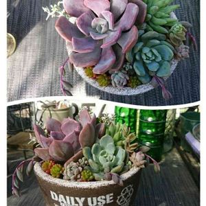 カットした✂️デビーとマーガレットレッピンを寄せ植えに( ˶ˆ꒳ˆ˵ ) デビーの葉挿しもたくさん控え中なんだ♫ ブロウメアナもスカスカだったのが、だいぶ増えてきた୧⃛(๑⃙⃘⁼̴̀꒳⁼̴́๑⃙⃘)୨⃛冬に茎が茶色になってダメかなって思ったけれど春からの回復力がすごかった〜👏🏻❣️