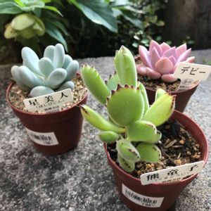 アイススプライトとデビー😸 デビーちゃんほしくて色々検索してて、悩んでました😆 先日、ネット見ながら娘といいね~って話してたら、息子が「お母さん誕生日近いから、俺が買うからポチればいいよ」と言ってくれたので、ぽちりんこ😁 アイススプライトがほしいのはミエミエだけど、そう言ってくれたのは嬉しい😁 よし、お母さん、騙されちゃうわ(笑)嬉しいから、お金も払っちゃうわ(笑) そして、頼んだ四つのうち2つが届きました😸 2つとも子供が2つずつついてて、ちょっとラッキー😆 アイススプライトの方はついてても大丈夫そうだけど、デビーの子は葉の下に押されてる感じなので株分けしないとダメになっちゃう気がする😅 株分けしたいけど、雨だしなー😅 というか、届いてすぐに鉢からだしていいものなのか、なんとなく考えちゃいます😼💦